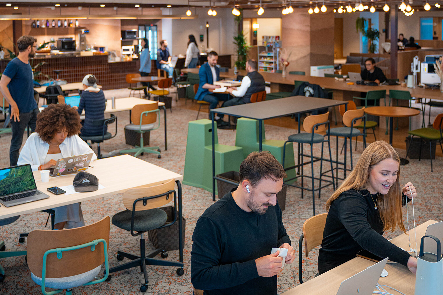 どちらの拠点にも共通していたのは、オンとオフを自然に切り替えられる空間設計だった。作業エリアの中でも会話可能なエリアと、静寂を保ち集中できるエリアが明確に分けられている。さらに、カフェやジム、シャワーブースなど、働くこととリフレッシュを両立できる環境が整っているのも特徴だ。