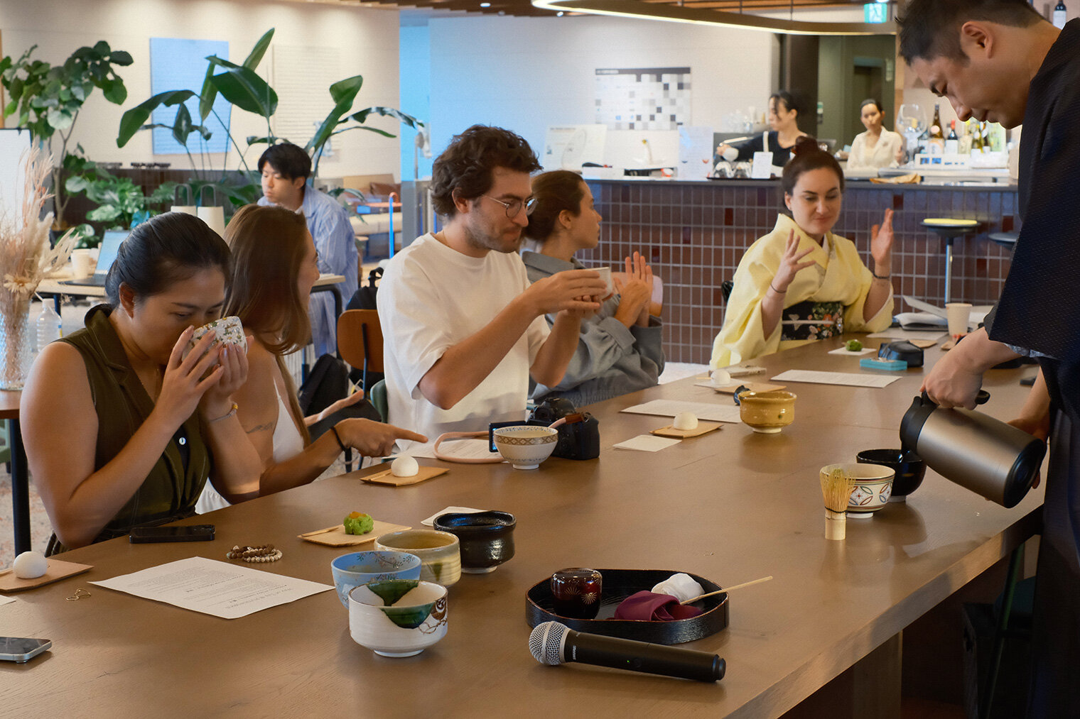 梅田のど真ん中に位置するFUTRWORKSにプールはない。しかし、その代わりに大阪の景色を一望できるチルスペースやカラオケルームなど、利用者がリラックスしながら自然に交流できる空間づくりを取り入れた。さらに、抹茶のティーセレモニーや日本酒のテイスティングなど、日本文化を体験できるプログラムも展開している。