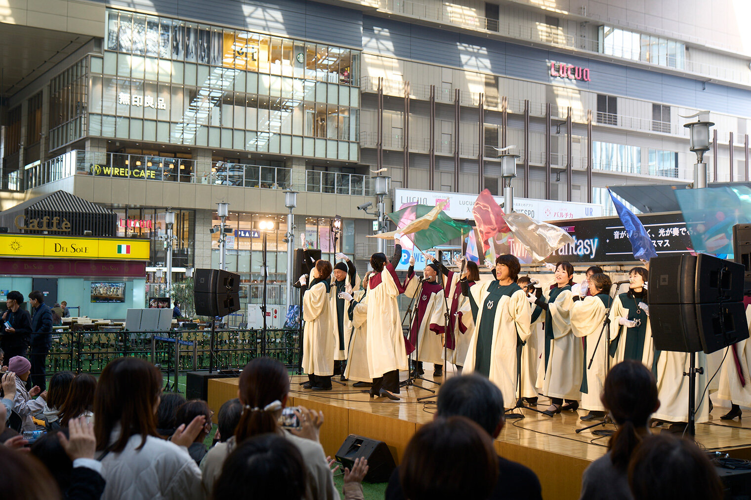 ショーケースが行われたのは、JR大阪駅・大阪ステーションシティ 5階の「時空(とき)の広場」。クリスマスイルミネーションが輝く季節、JR大阪駅構内に位置する開放的な空間で、11組によるパフォーマンスが繰り広げられた。各クワイアのパフォーマンスにはそれぞれ違った魅力があり、広場全体が歌声で満ちていく。